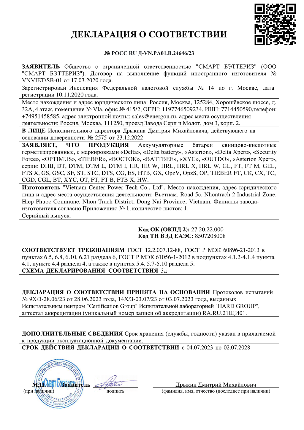 Свинцово-кислотные аккумуляторы DELTA серии DTM изготовлены по технологии с абсорбированным электролитом (AGM). В батареях этой серии применена усовершенствованная конструкция решеток из особо чистого сплава свинца, что увеличивает срок службы и улучшает разрядные характеристики.