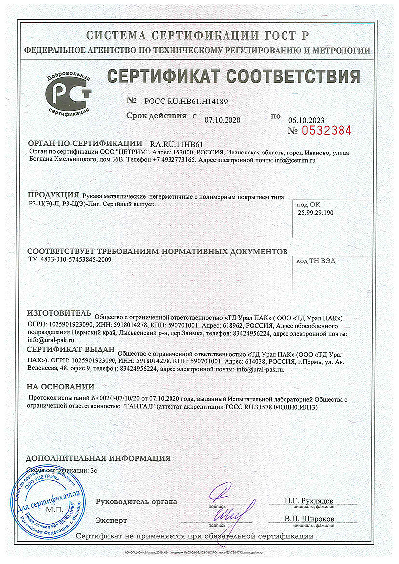 Металлорукав 20 мм РЗ-Ц-Х-20 с/з и х/б (бухта 50 м) Урал Пак купить в Перми в компании ВИПАКС.