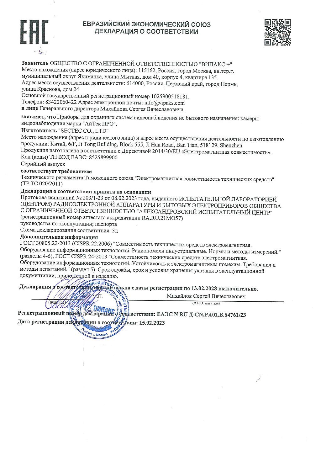 Уличная цилиндрическая IP- видеокамера с ИИ. Разрешение широкоформатное (2K@16:9) 4,66 Мп, оснащена моторизированной с автофокусом HD-оптикой и обладает функцией базовой видео аналитики, основанной на "трекинге" объекта: Вторжение/ покидание периметра; Пересечение линии; Обнаружение пешехода, авто; Определение лица; детектор превышения/отклонения заданного диапазона громкости звука. Архив может записываться на локальное хранилище - SD-карту памяти. Набор интерфейсов аудио и тревоги позволяет задействовать переферийные устройства, изображение обрабатывается технологиями True WDR, 3DNR. Поддержка Onvif 20.0 и мобильного приложения - RCamMonitor.