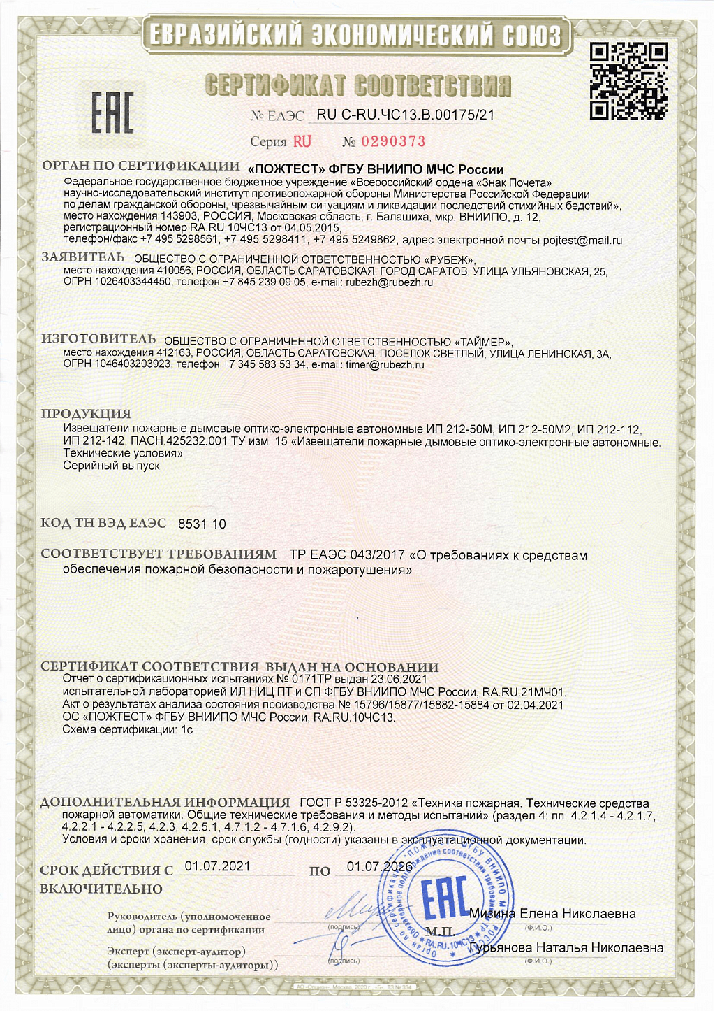 - принятие решения о формировании сигнала «Пожар» с максимальной точностью благодаря микропроцессорной обработке результатов измерений, что существенно снижает вероятность возникновения ложных срабатываний;