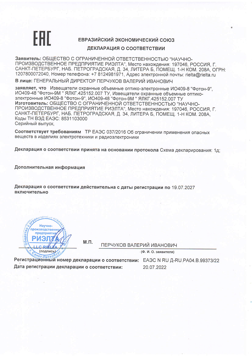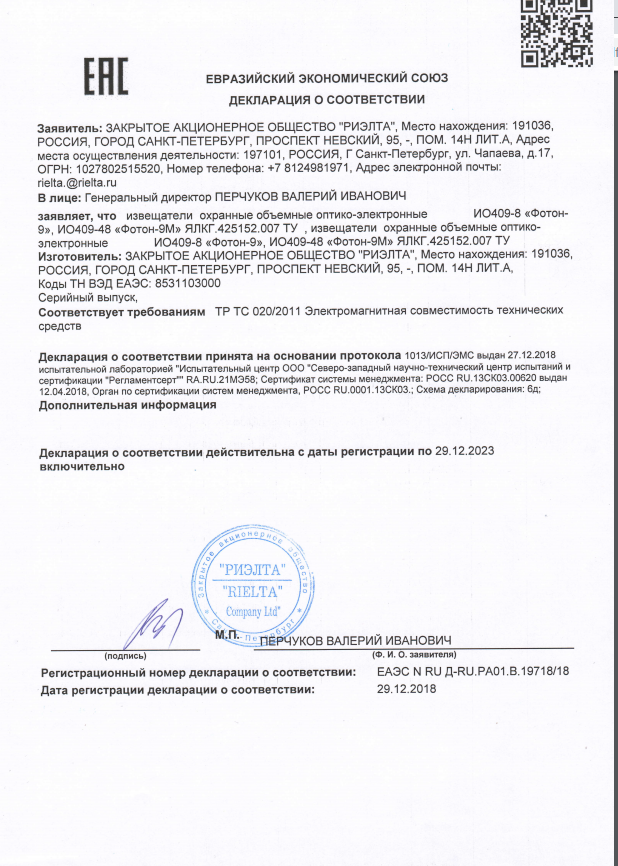 Извещатель охранный «Фотон-9» применяется для обнаружения проникновения в охраняемое пространство закрытого помещения и формирования сигнала тревоги размыканием выходных контактов реле; для использования в системах охранной сигнализации. Прибор имеет антисаботажную зону которая формируется непосредственно под извещателем, исключая несанкционированный подход к нему, возможность отключения светового индикатора, выбор режима чувствительности. Извещатель предназначен для использования в закрытых помещениях (магазинах, офисах, музеях и в жилых помещениях – квартирах). Диапазон высоты установки прибора – от 2 до 5 м. Прибор питания следует располагать вдали от мощных силовых электрических кабелей.