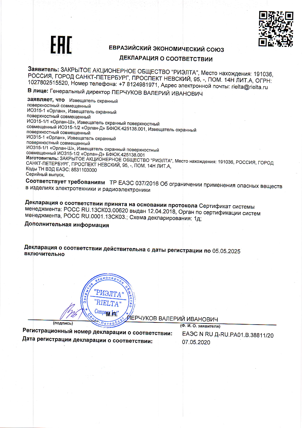 Извещатель Орлан-Д (ИО 315-1/2) Риэлта