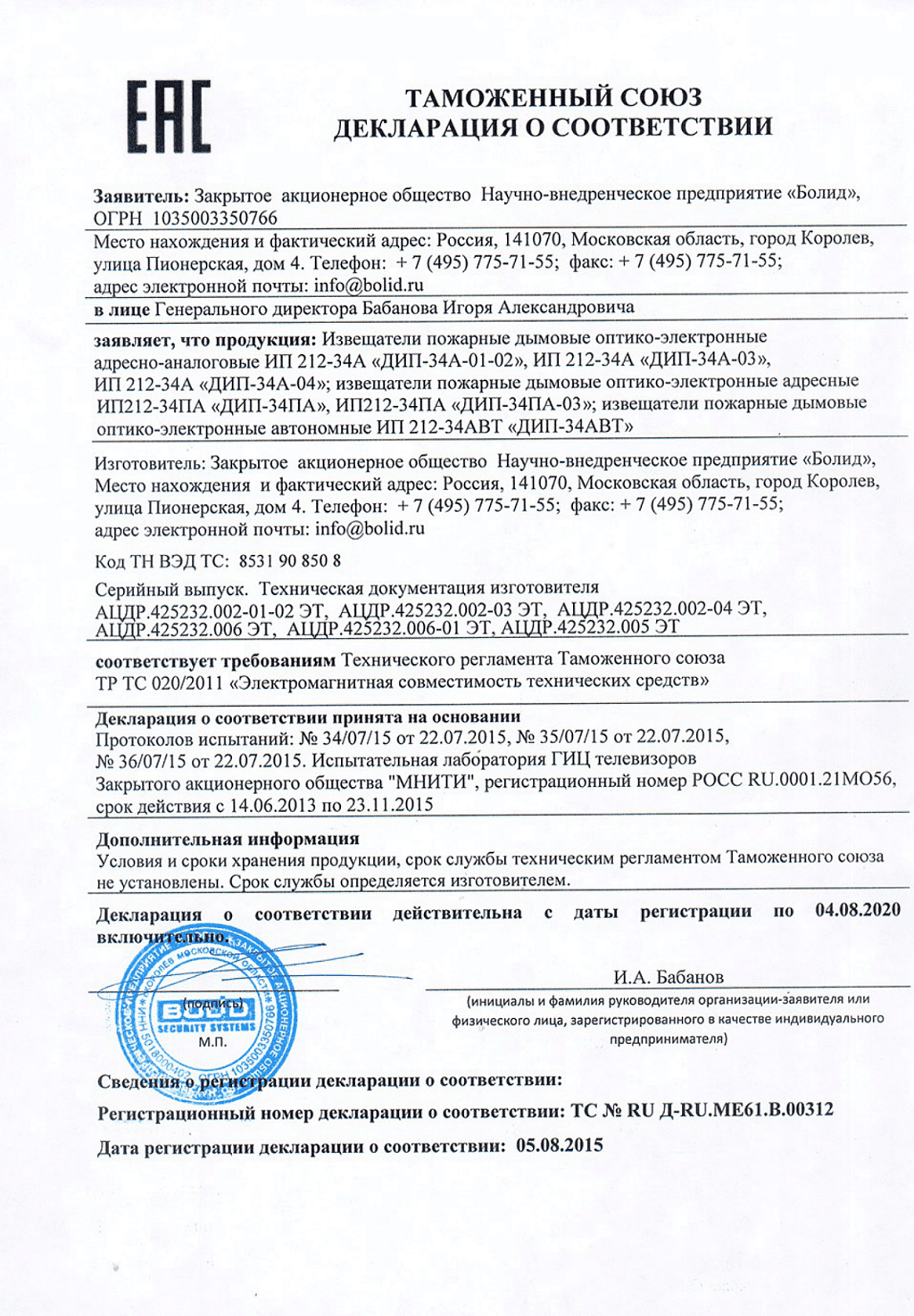 Отсутствие разрушаемых деталей позволяет возвращать извещатель в дежурный режим, без замены приводного элемента