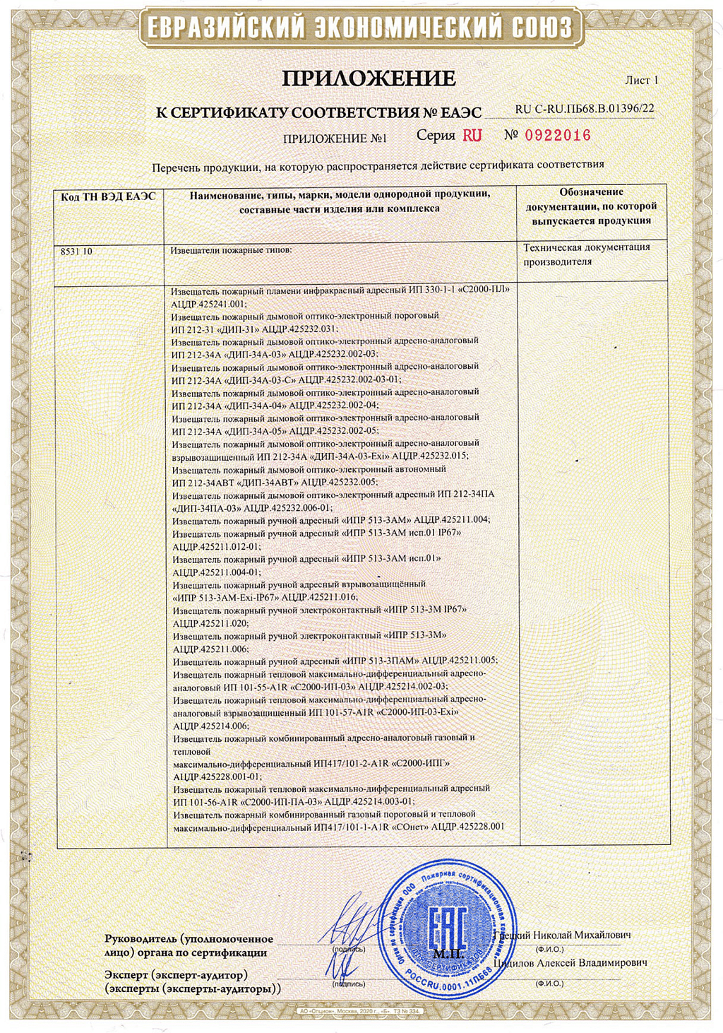 • Тип извещателя Адресный