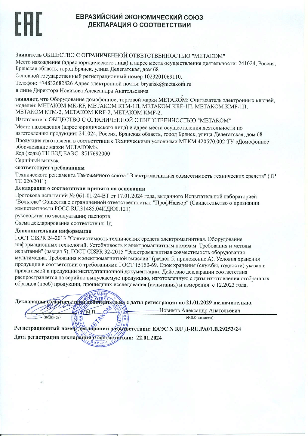 Процесс создания ключа-дубликата требует наличия USB-адаптера МЕТАКОМ МКА-01U. После записи кода на ключ ТМ-2004 его можно использовать как ключ ТМ-2003 и программировать на домофонах, использующих протокол обмена Dallas iButton™ DS1990A.