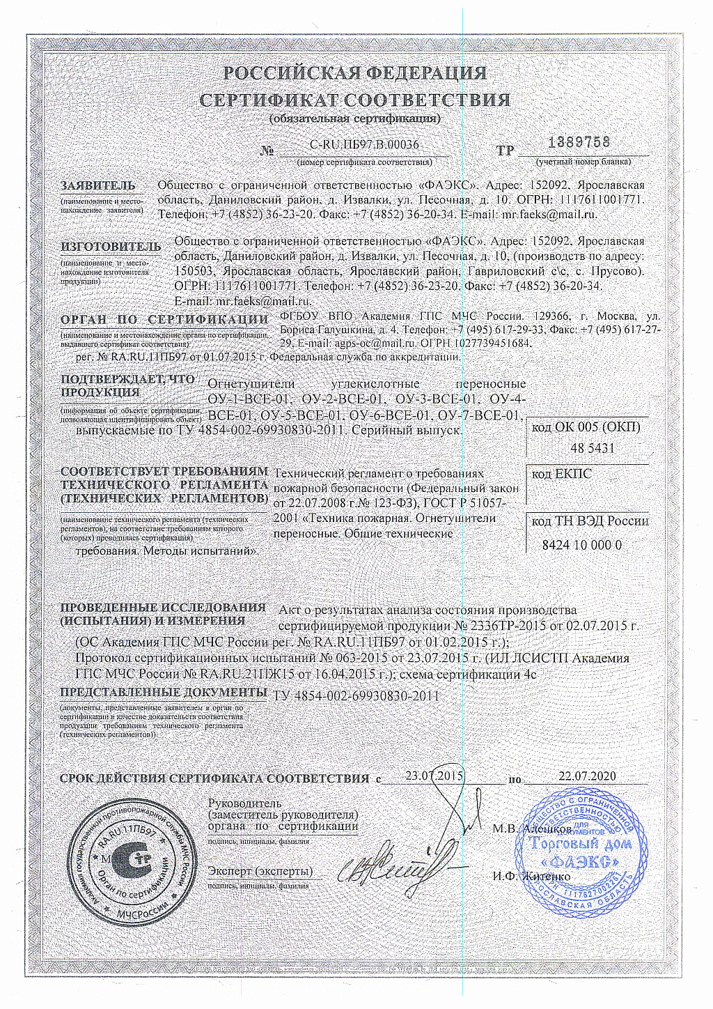 Углекислотный огнетушитель ОУ-5 ВСЕ используется для тушения различных веществ, горение которых не может происходить без доступа кислорода, загораний на электрифицированном железнодорожном и городском транспорте, электроустановок, находящихся под напряжением до 10 000 В, загораний в музеях, картинных галереях и архивах, широкое распространение в офисных помещениях при наличии оргтехники, а так же в жилом секторе. Преимуществом углекислотных огнетушителей является то, что двуокись углерода не повреждает объект тушения и не оставляет следов. Огнетушитель ОУ-5 ВСЕ применяется для тушения следующих веществ: горючие жидкости (В); горючие газы (С); электрооборудование (Е), находящееся под напряжением до 10 000 В. Углекислотные огнетушители не используются для тушения: твердых горючих веществ (А); веществ, горение которых может происходить без доступа кислорода (Д), (алюминий, магний, натрий, калий); электроустановок напряжением выше 10 000 В.