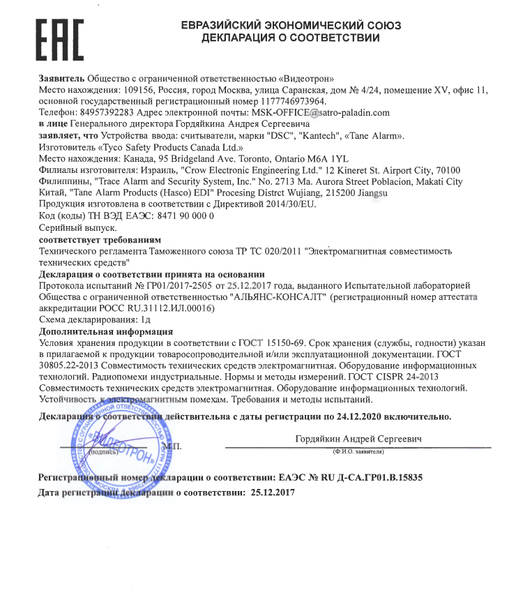 ВЫХОД НА ОПОВЕЩАТЕЛЬ