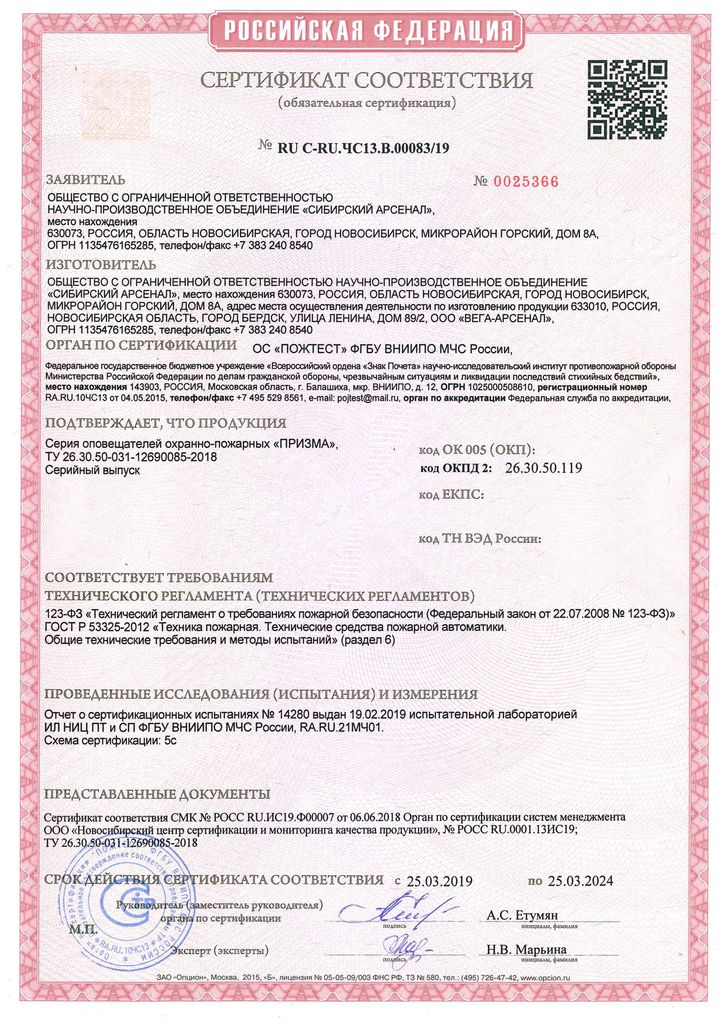 Световой, Uпит.10...14В, Iпотр.30 мА, IP41, tраб.-30...+50°С, 80х30мм Световой оповещатель "Призма-100" предназначен для использования в составе систем охранно-пожарной сигнализации для выдачи …