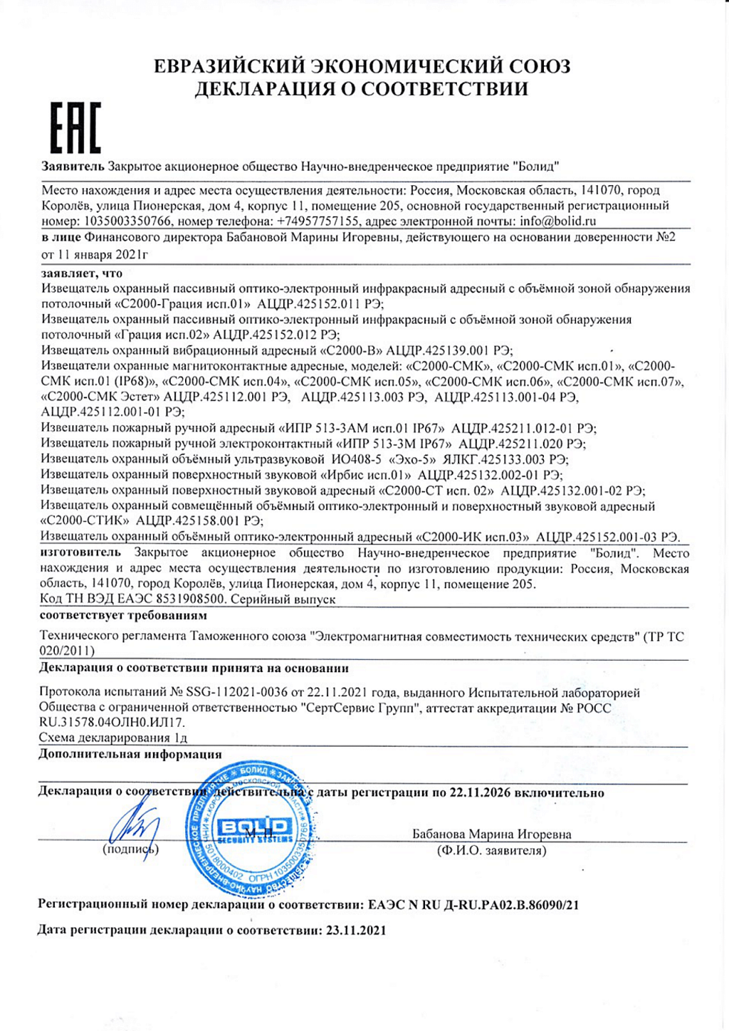 • Производитель BOLID