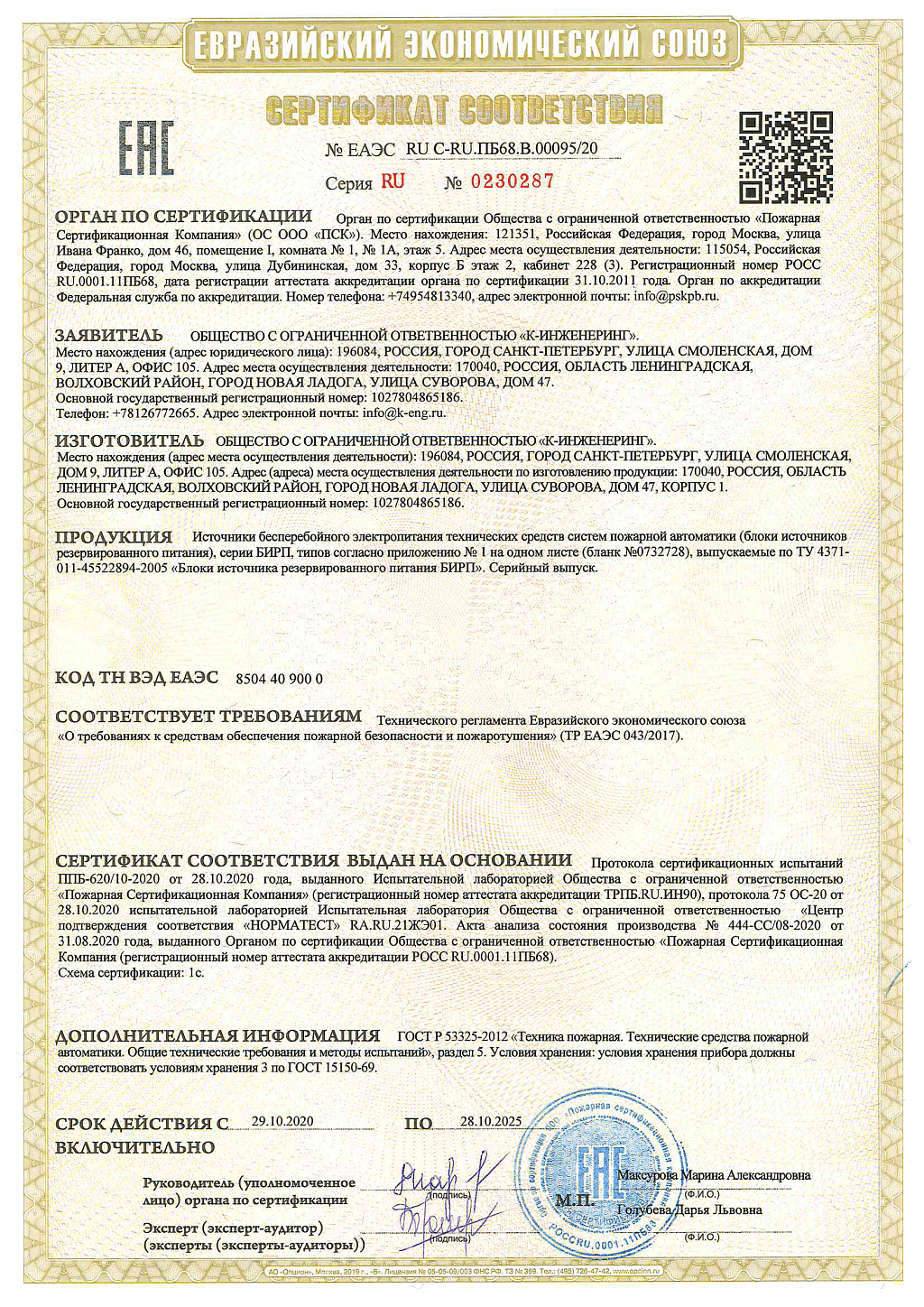 Прибор предназначен для гарантированного электроснабжения постоянным током технических средств охраны, сигнализации и связи. В БИРП имеется защита аккумулятора от глубокого разряда. Прибор имеет следующие особенности: обеспечивает автоматическое отключение и заряд АБ, а также защиту от неправильного подключения (переполюсовки) АБ; прибор снабжен электронными защитами от короткого замыкания и превышения выходного напряжения; в блоке предусмотрены информационные выходы «Контроль Сети (КС)», «Контроль батареи (КБ)» и выходы «Контроль выхода (КВ)» для передачи информации во внешние цепи. Блок рассчитан на эксплуатацию в закрытых помещениях